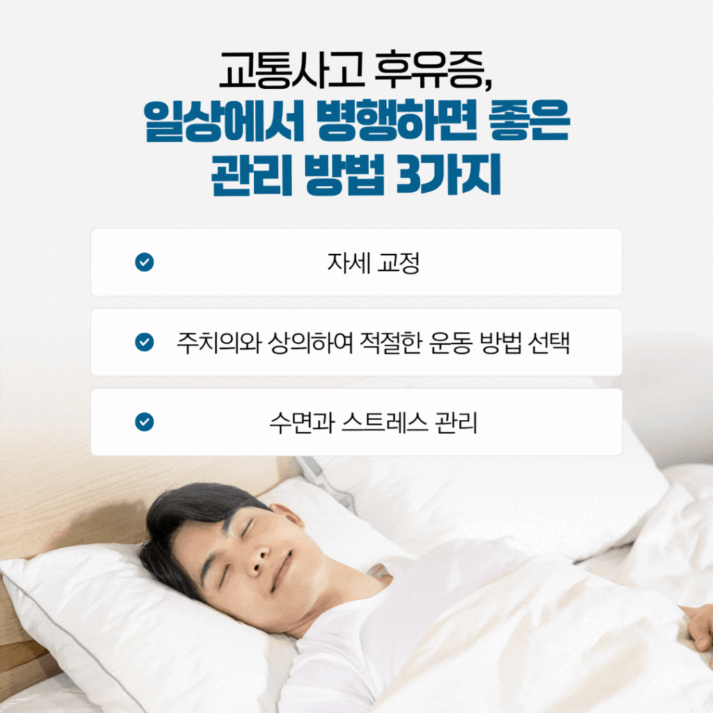 미루지 마세요, 지금이 골든타임입니다. 사고 후유증을 방치하면 만성으로 이어질 수 있어요. 초기에는 가벼운 증상도 시작이 지나면서 심각한 문제로 발전할 수 있거든요.