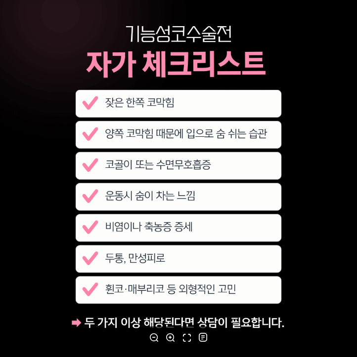 내가 기능성 코수술이 필요한 사람인지 헷갈린다면, 이 체크리스트로 금방 알 수 있습니다.