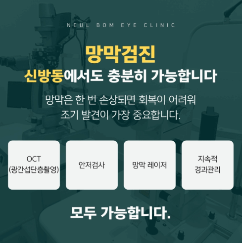 망막은 한번 손상되면 되돌리기 어렵기 때문에, 빠른 발견과 신속한 대응만이 시력을 지키는 유일한 방법입니다.