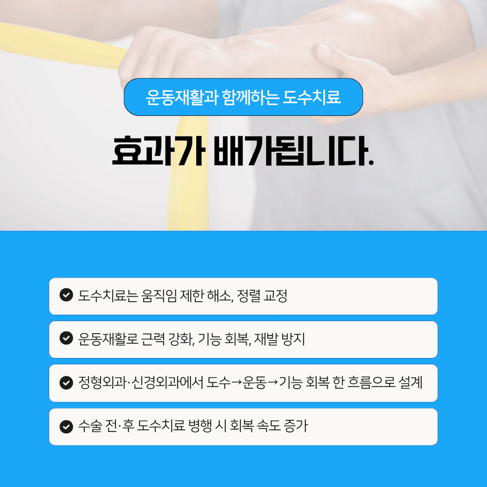 수술 전후에 도수를 병행하면 회복 속도가 완전히 달라져요.