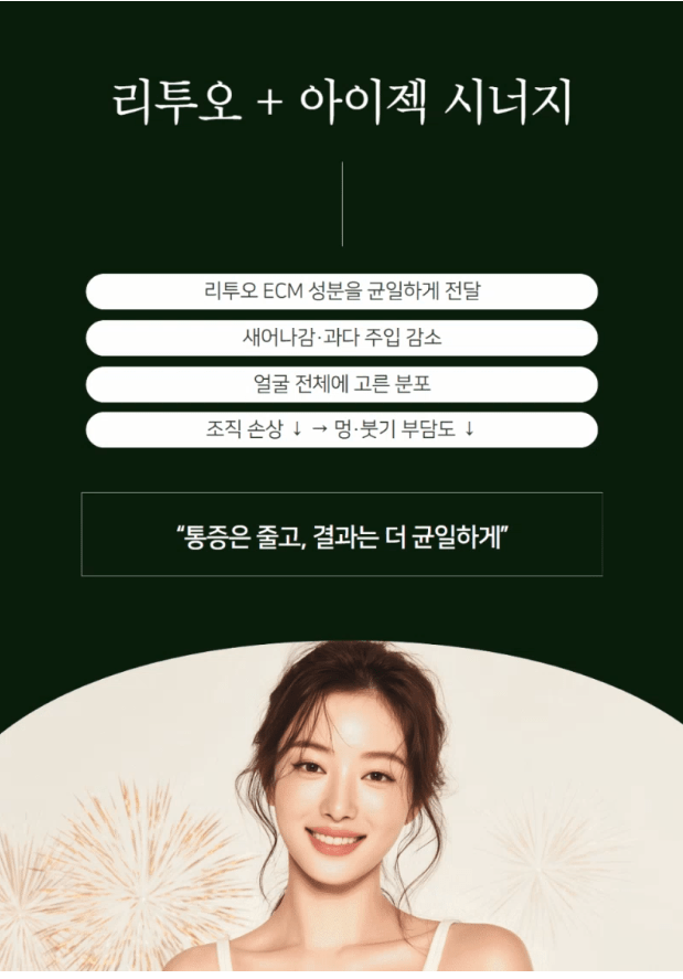 리투오통증이 걱정되어 망설이셨던 분들이라면, 아이젝 같은 자동 인젝터를 갖춘 곳에서 상담을 받아보시길 권합니다. 기계의 정밀도가 사람 손의 한계를 보완해 주기 때문에 훨씬 편안하게 시작하실 수 있어요.