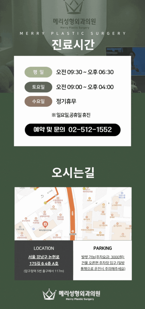 안녕하세요, 압구정 메리성형외과입니다.