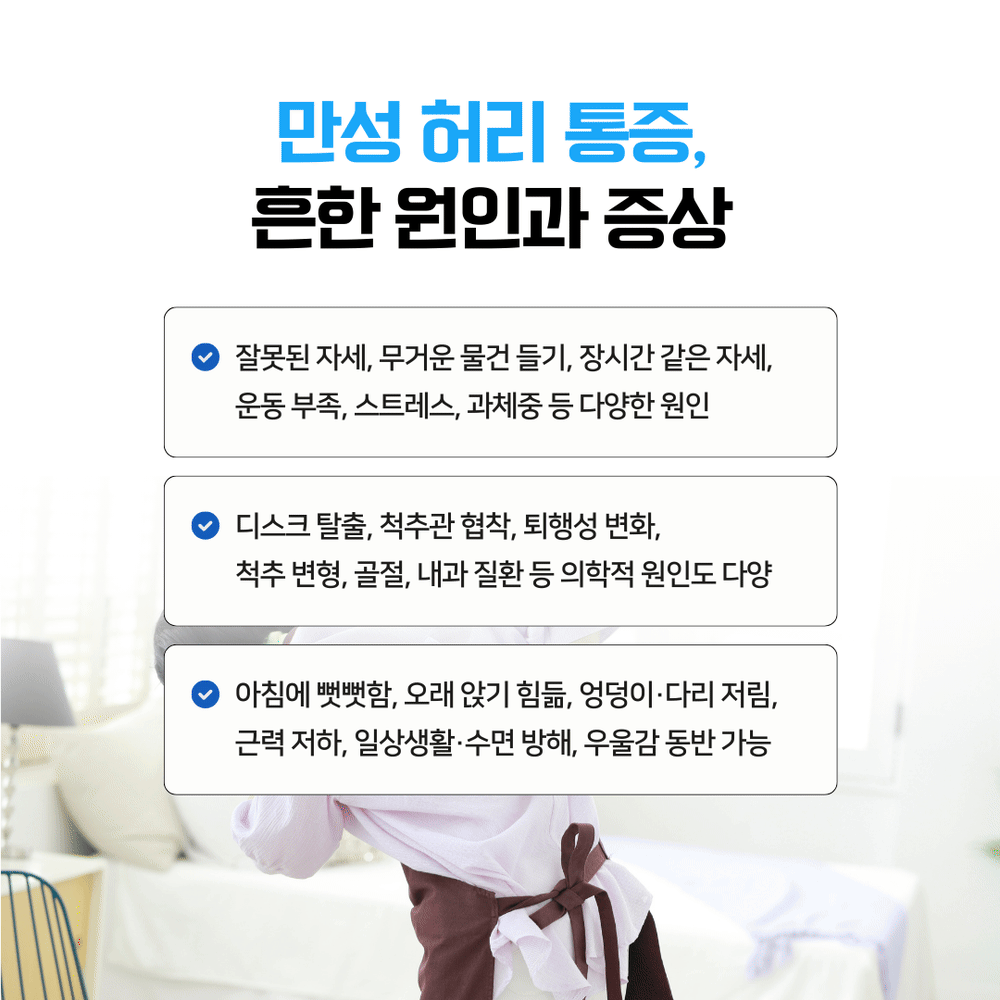 아침에 눈 뜨자마자 허리가 뻐근해서 침대 밖으로 나오기가 겁난 적 있으신가요? 일하다가 갑자기 찌릿하고 퍼지는 통증에 몸을 웅크렸던 순간도 떠오르시죠.