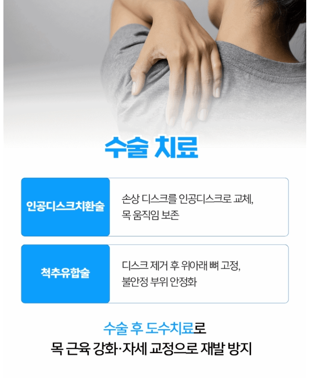 가벼운 디스크는 약물이나 물리치료로 충분히 회복되지만, 신경 압박이 심하면 시술이나 수술이 필요할 수 있습니다.