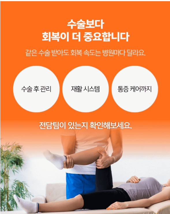 수술 방법만 설명하고 마무리하는 곳보다, 언제부터 계단 오르내리기가 가능한지, 언제부터 운전을 재개할 수 있는지까지 구체적으로 안내해 주는 곳이 진정으로 나에게 맞는 곳입니다.