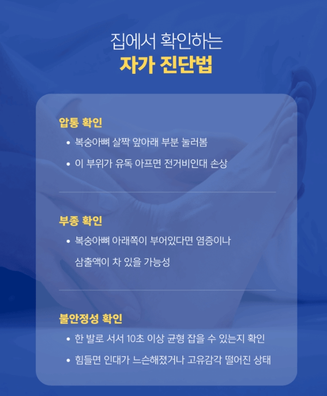 발목접질림 집에서 확인해 볼 수 있는 방법이 있나요?