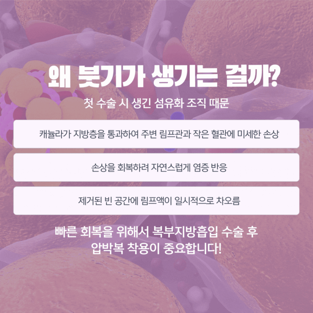 많은 분들이 붓기를 보고 ‘뭔가 잘못된 건가?’ 걱정하시는데, 이건 정상적인 회복 과정이에요. 제가 지방을 제거할 때 캐뉼라라는 가느다란 관으로 지방층을 통과하잖아요.