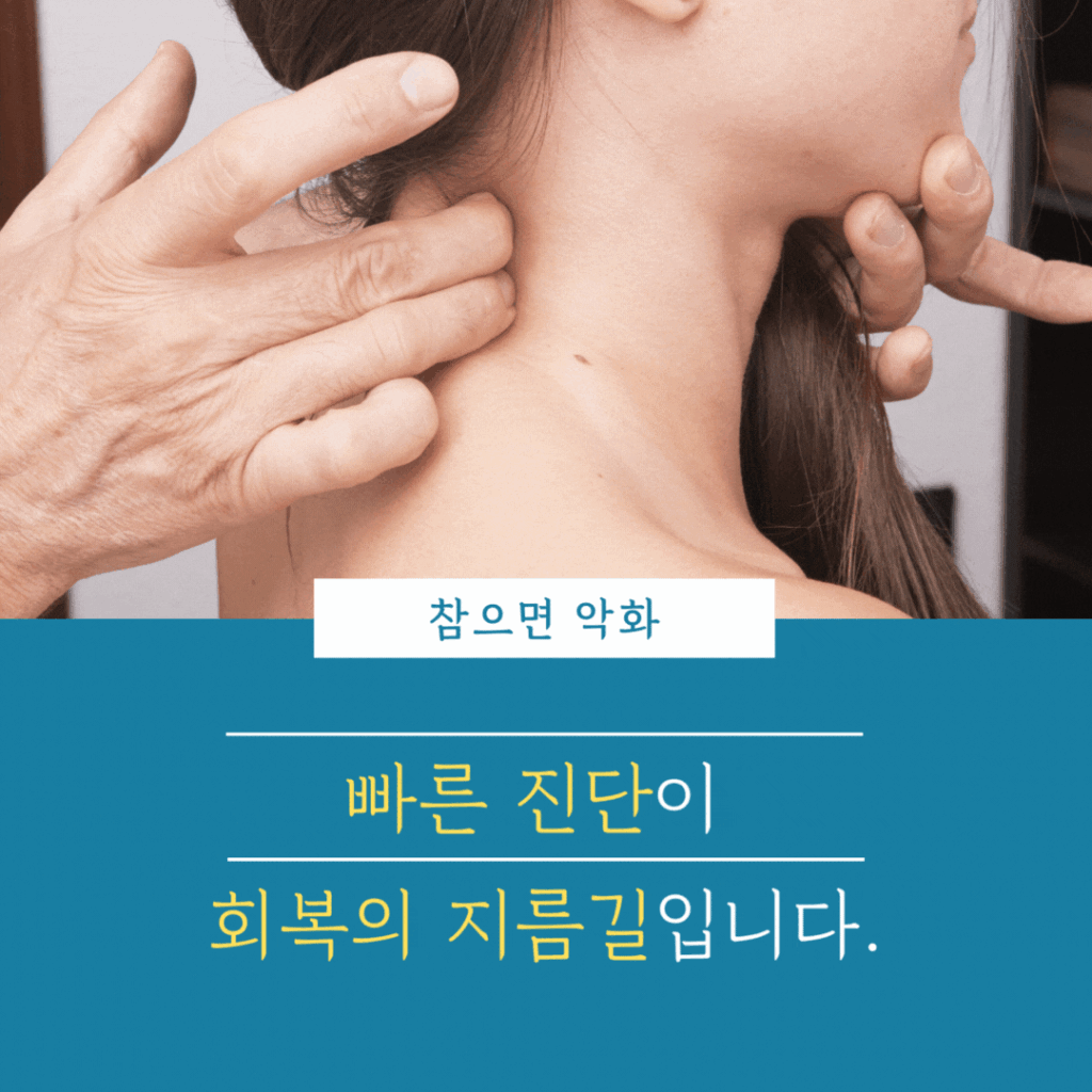 며칠 정도 뻐근했던 통증이 어느 순간 찌릿한 신경통으로 바뀌거나, 고개를 돌릴 때 전기가 오듯 아프고, 팔이 무겁고 저린 느낌이 든다면 더 이상 미루지 말아야 할 때입니다.