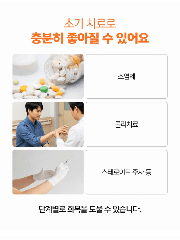 증세가 오래됐거나, 이미 구조적 변화가 많이 진행된 경우라면 회복에 시간이 더 필요할 수 있죠.