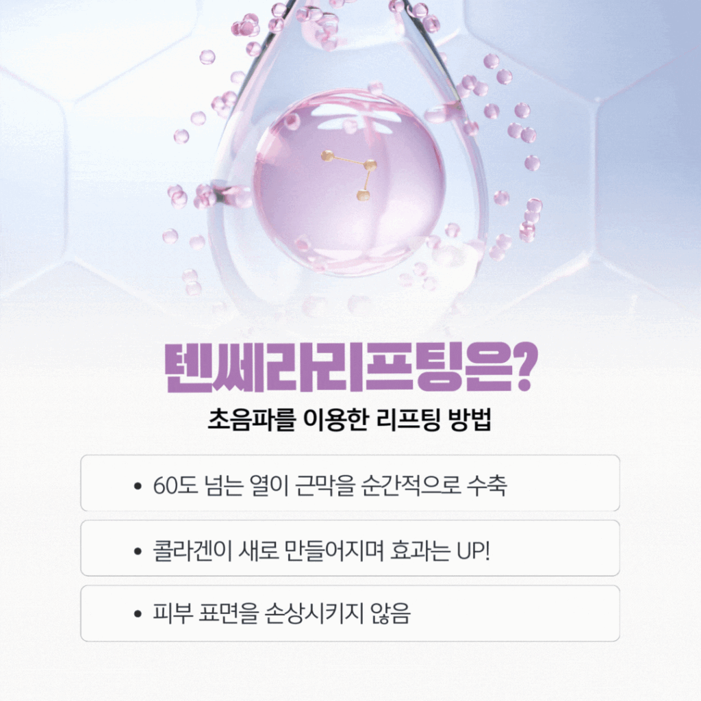 이제 해결책을 말씀드릴게요. 먼저 텐쎄라는 집속 초음파를 활용한 리프팅 시술이에요.