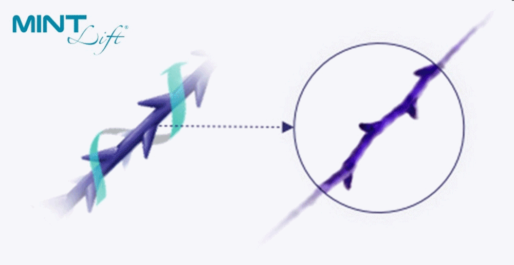 민트실리프팅은 특허받은 360도 입체 돌기 구조를 가진 실이 피부 속 진피층과 단단히 맞물리며 처진 조직을 안정적으로 고정하는 시술입니다.