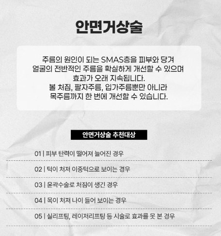 오늘은 왜 페이스리프팅이 다른 시술들과 차원이 다른지, 특히 표피 아래 근막층까지 개입해야 진정한 안면거상술효과가 나타나는지 솔직하게 설명드릴게요.