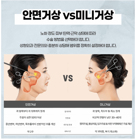 그러므로 안면거상술효과 중 어떤 게 필요한지 성형외과 의료진과 충분히 상담하는 것이 좋아요.