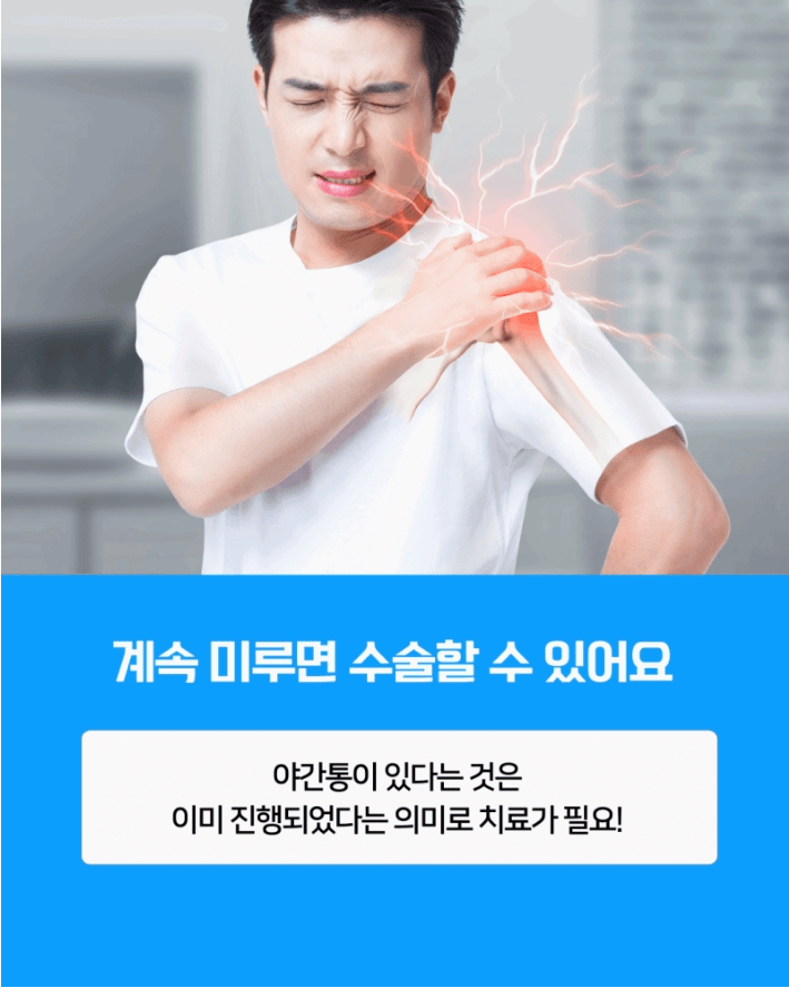 반대로 야간 통증을 계속 방치하면 부분 파열이 완전 파열로 이어지거나, 관절이 심하게 굳어 수술을 고려해야 하는 상황이 될 수 있어요.