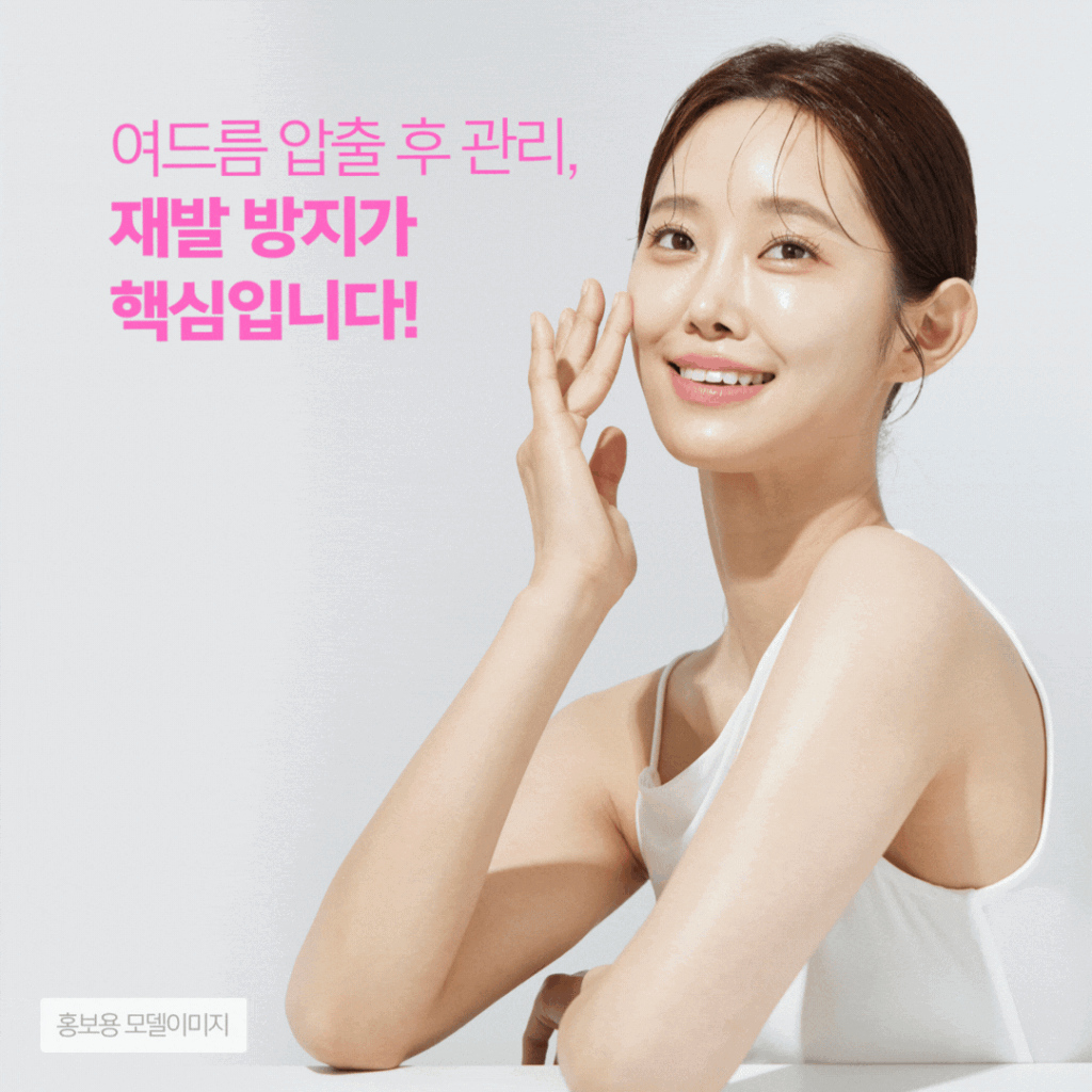 또 같은 자리에 계속 재발하거나, 화이트헤드와 블랙헤드가 많아 피부가 지저분해 보이는 경우도 많습니다. 이런 상황에서는 올바른 제거와 관리가 정말 중요합니다.