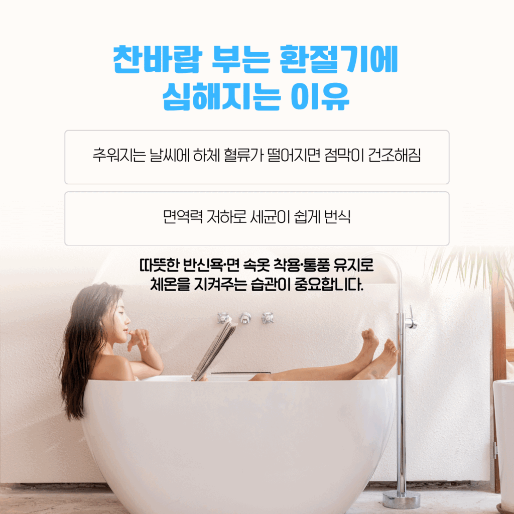 추우면 하체 순환이 떨어지면서 질 점막도 건조해지고 면역력도 약해지거든요.