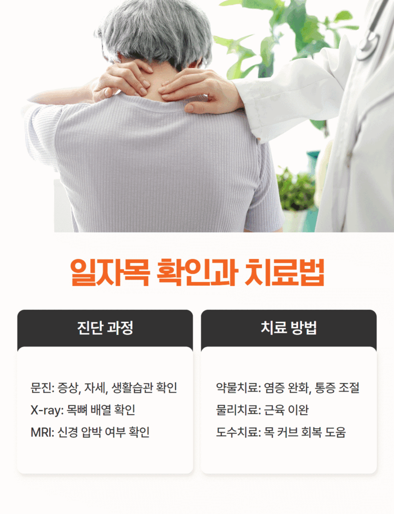 일자목이 의심되면 저희 병원에선 다음과 같은 과정으로 진단을 진행합니다.