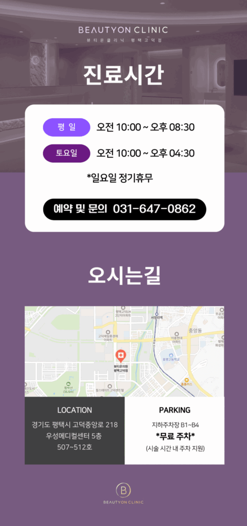 안녕하세요. 뷰티온의원 평택고덕점입니다.