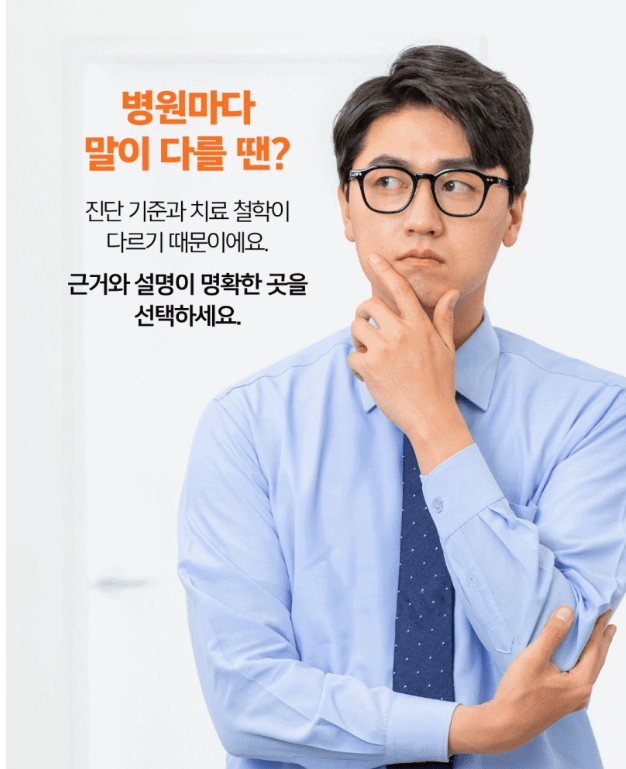 같은 영상 자료를 가지고 여러 곳을 방문했는데, 한 곳에선 “바로 수술이 필요합니다”, 다른 곳에선 “운동치료면 충분해요”라는 정반대 답변을 듣는 경우가 흔합니다.