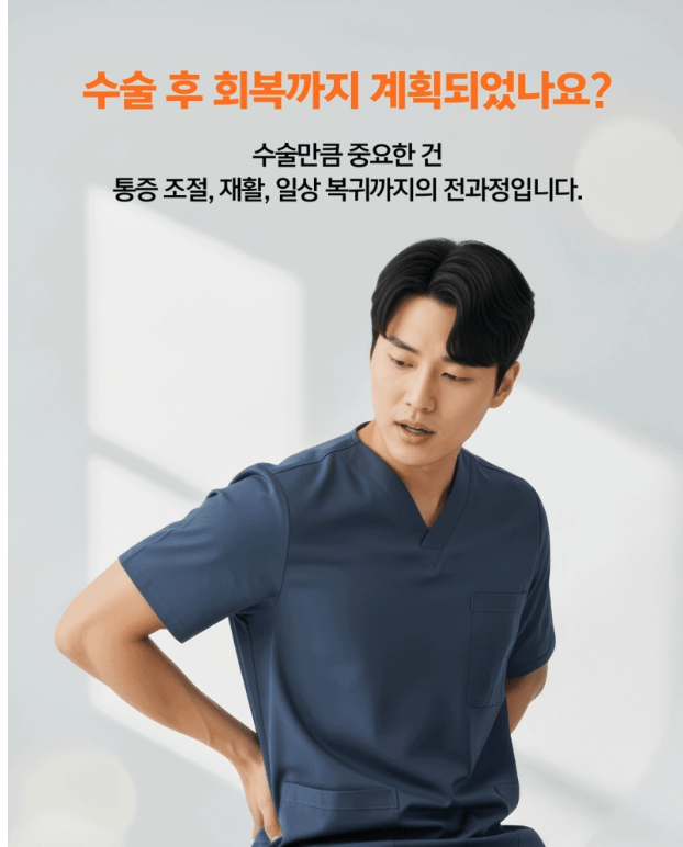 그래서 척추수술병원을 고를 땐 수술 후 관리 체계가 체계적인지 반드시 확인하시는 게 좋아요.