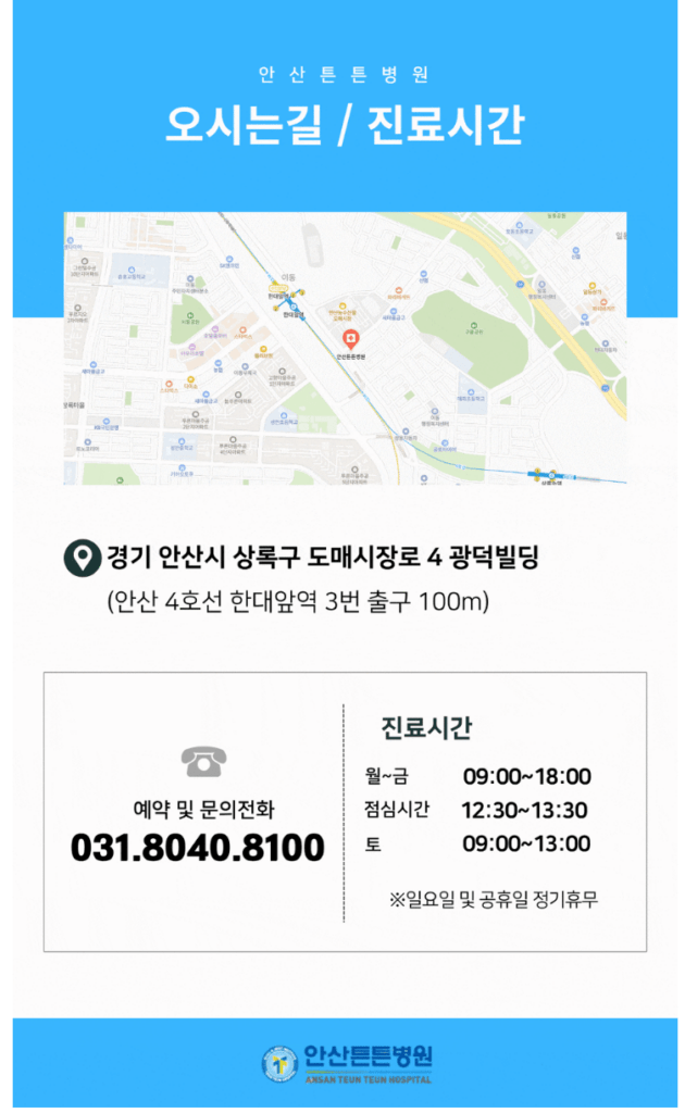 안녕하세요, 안산튼튼병원입니다.