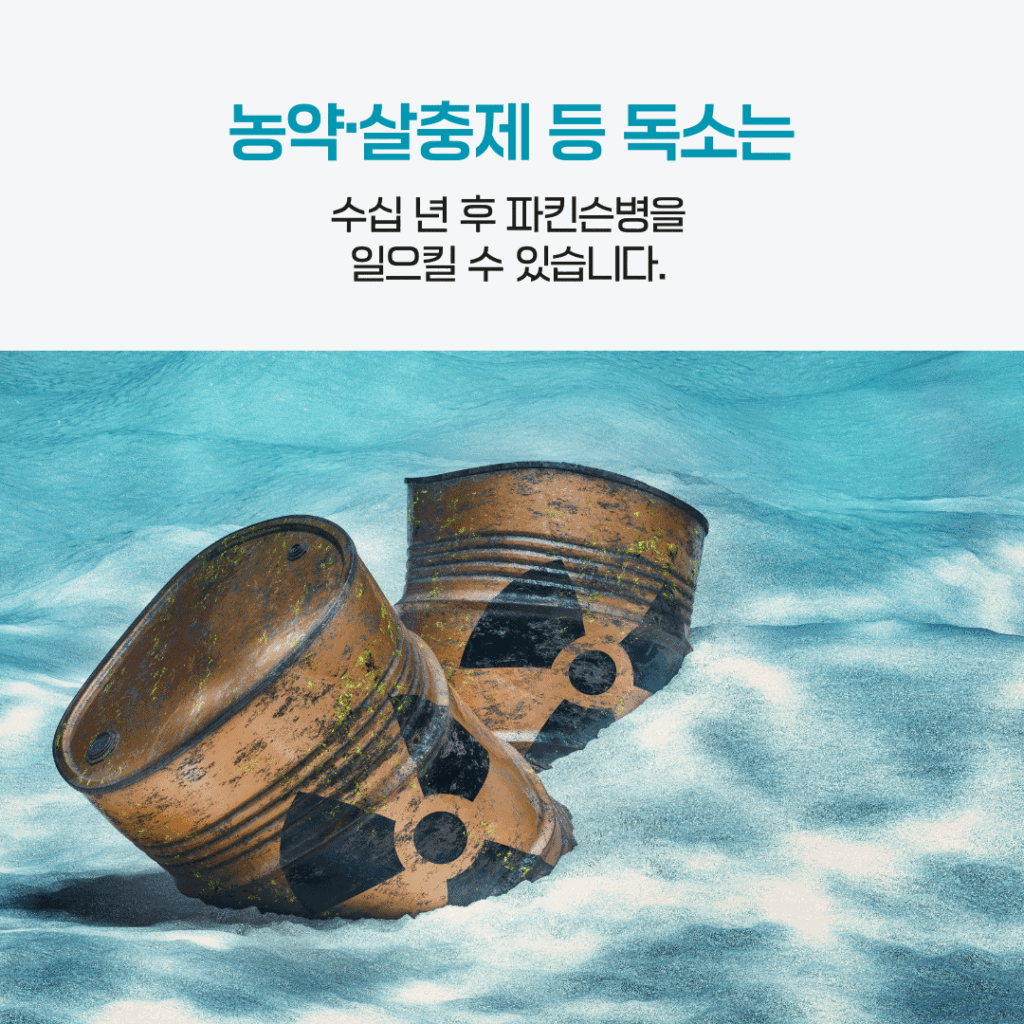 보호장비도 제대로 갖추지 않은 채 농약 냄새가 온몸에 배도록 일하셨던 날들을 떠올리시며, 혹시 그 때문이 아니냐고 자책하셨습니다. 사실 농약, 제초제, 살충제 같은 환경 독소는 파킨슨병 발병 위험을 높일 수 있습니다.