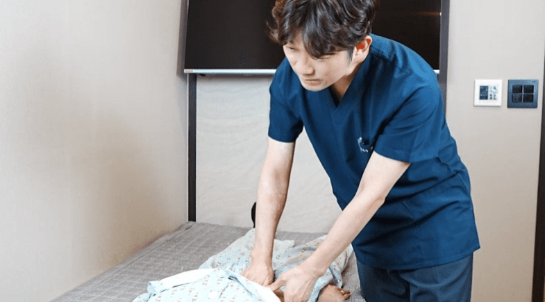 배를 눌렀을 때 단단한 부위가 있는지, 통증은 없는지 확인해요. 이를 통해 소화 기능과 순환 상태, 어혈 여부 등을 알 수 있어요. 기계 검사로는 발견하기 어려운 것들을 직접 파악하는 거죠.