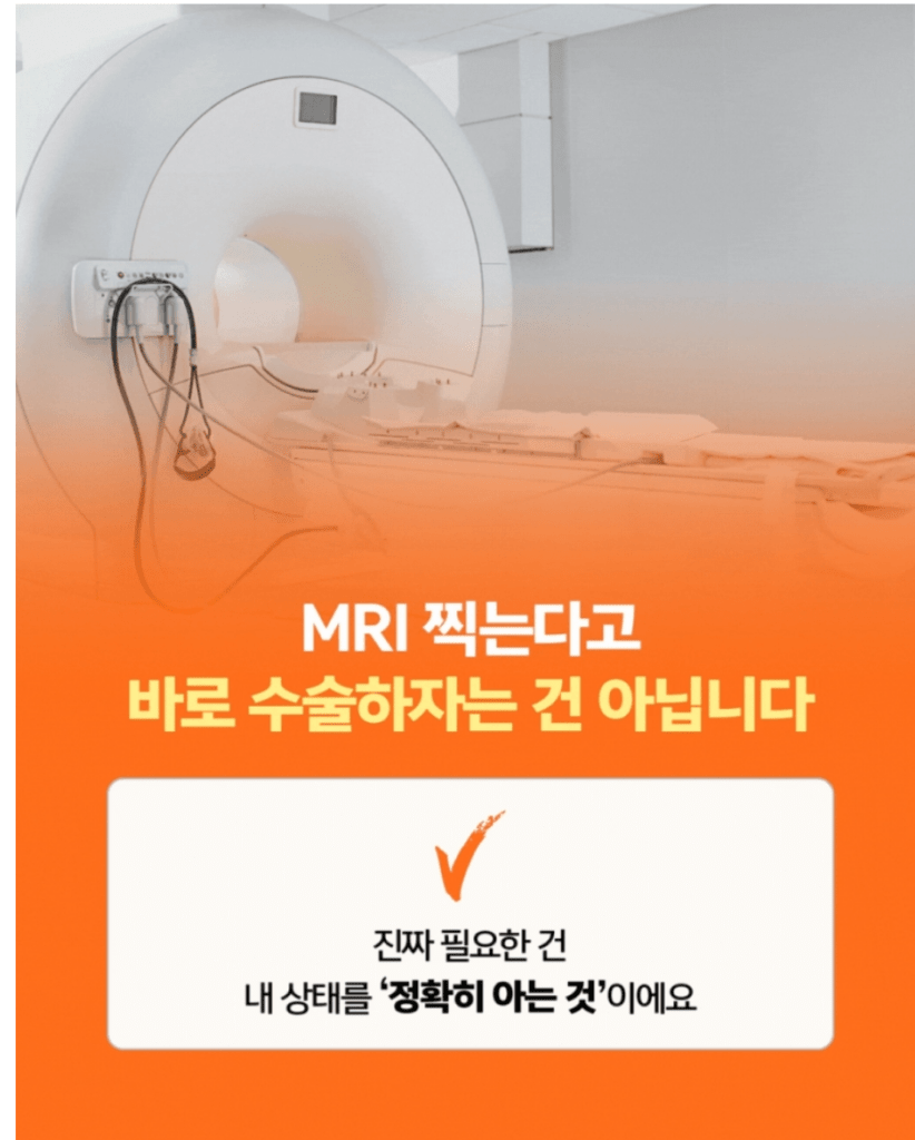 수술이 두렵거나 바쁘셔서 미루시는 분들이 많은데, 정밀한 진단만 받아도 내 상태가 기다려도 되는 케이스인지, 적극적인 대응이 필요한 상황인지를 명확하게 파악할 수 있어요. 검사를 받는다고 무조건 수술로 이어지는 건 아닙니다.