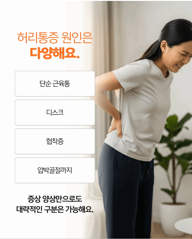 허리통증, 단순 근육통이라 넘기기엔 디스크·협착증 등 다른 원인이 숨어 있을 수 있습니다. 지금 꼭 확인해보세요.