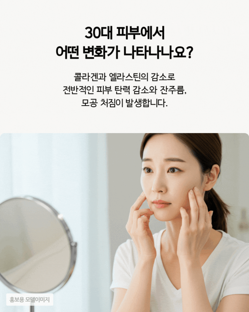 20대 후반부터 매년 약 1%씩 콜라겐이 줄어들고, 특히 30대에 들어서면 이 변화가 더 두드러지기 시작합니다.
