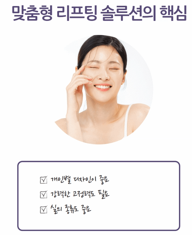 40대실리프팅을 할 때는 내 얼굴의 지방량과 피부 두께에 맞지 않는 과도한 개수를 넣는 것은 금물이에요. 많이 넣는다고 효과가 좋은 게 아니거든요. 오히려 부자연스러워 보일 수 있어요.